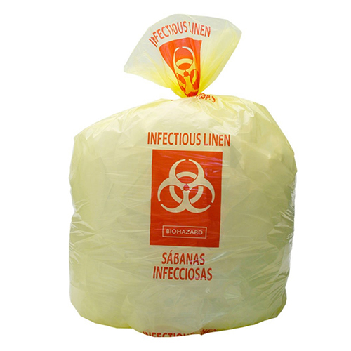 - Printed with Biohazard symbol and ?Infectious Linen? in English and Spanish in red
