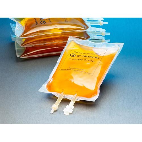 TSB Growth media, 500mL bag, 1X strength, breakaway covered needle access port and spike port