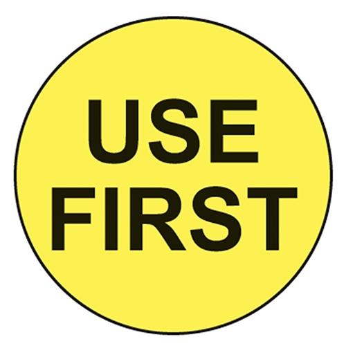 Use First Labels, Yellow with Black text, 1,000/EA